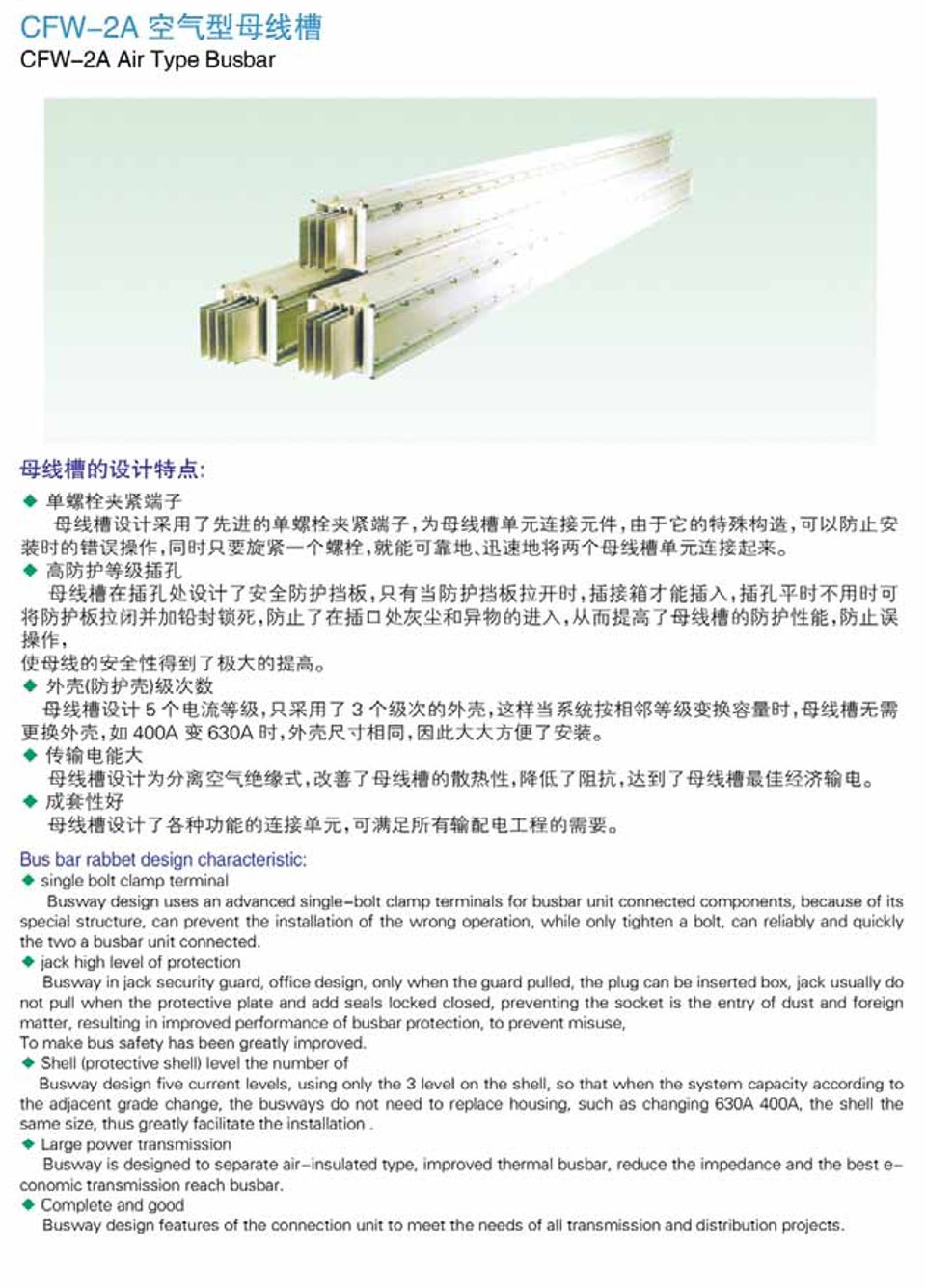產(chǎn)品名稱:CFW-2A空氣型母線槽
